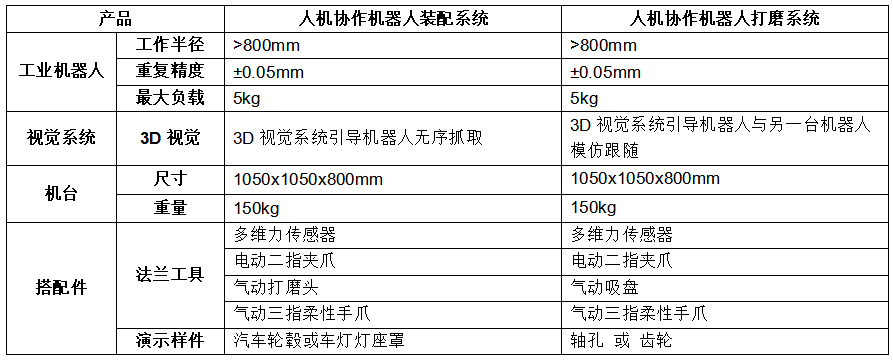 人機協(xié)作機器人裝配系統(tǒng)采用六軸協(xié)作機器人,配合獨立的高精度六維力傳感器,實現(xiàn)軸孔或齒輪裝配等力位混合控制。人機協(xié)作機器人打磨系統(tǒng)主要通過協(xié)作機器人多維度的力反饋控制完成復(fù)雜3D輪廓產(chǎn)品的力控打磨。實驗平臺用于功能任務(wù)實訓(xùn)或二次開發(fā),既適合學(xué)生入門培訓(xùn)和實驗,也可以適合企業(yè)項目前期仿真、工藝測試等研究。平臺采用模塊化設(shè)計,能夠方便功能擴展。